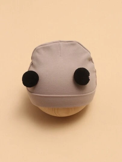 卡其色嬰兒帽。新生兒胎帽。可愛的雙球嬰兒帽,適合男性和女性嬰兒。 - 卡其色 - 查看 3