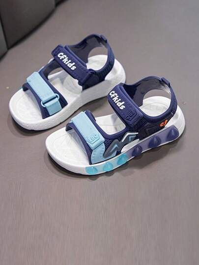 新款夏季婴儿鞋,露趾魔术贴设计,柔软橡胶鞋底,防滑,休闲沙滩凉鞋 - 藍色 - 查看 1