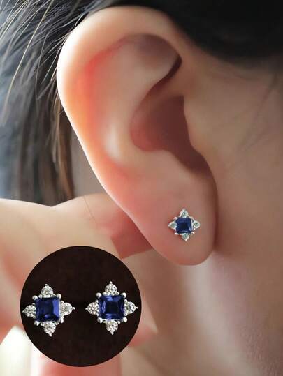GAGAFEEL 一对 S925 纯银奢华优雅闪亮蓝色菱形锆石金耳钉,适合女士奢华时尚耳环日常生活派对珠宝礼物 - 銀色 - 查看 1