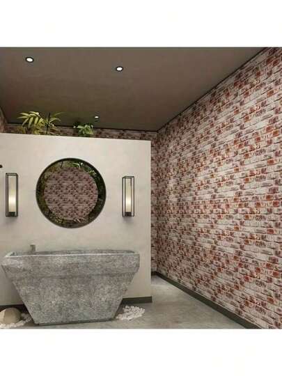 一卷壁纸,自粘壁纸,带有宫廷墙壁的红色砖块图案,易于安装和移除,经久耐用,适用于卧室和客厅的特色墙,以及橱柜和桌柜的翻新,具有现代美学风格。 - 紅白色 - 查看 10