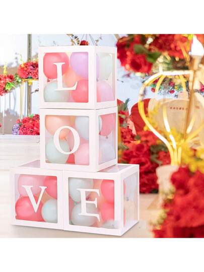 4入組透明可摺疊禮品盒,情人節愛心禮品盒,驚喜透明盒子