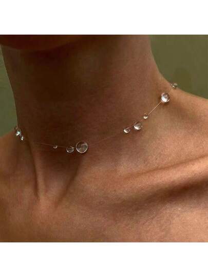 A Set Of Summer Refreshing Water Drop Ice Transparent Dew Necklace Earrings, Simple Style, High-End Sense, Creating Fashionable Elegance For Women Who Pursue Fashion
