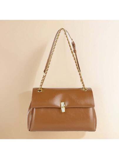 簡約鏈條斜肩小方包復古腋下手提包休閒單肩包,適合大學生、女士、女生、女士購物、約會、通勤、參加晚宴、聚會、度假 - 卡其色 - 查看 1