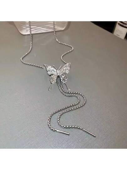 时尚的黑色蝴蝶抽绳长项链适合女孩日常佩戴。 - 銀色蝴蝶 - 查看 1