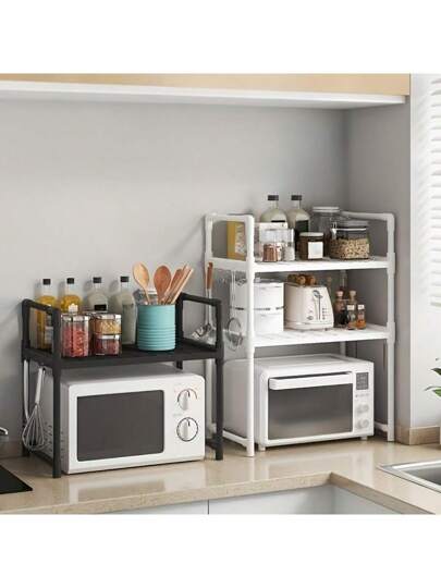 多功能金属和塑料储物架、搁架、烘烤架 - 台面分层厨房储物整理器,带挂钩的双面搁架,无需电源,有黑色和白色可选,具有两层和三层选项,适用于厨房、客厅、浴室和实验室储物架。 - 彩色 - 查看 1