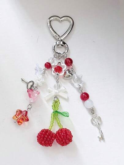 千禧年风格的甜美酷炫草莓郁金香串珠手机壳挂件、包扣、钥匙扣和吊坠。
