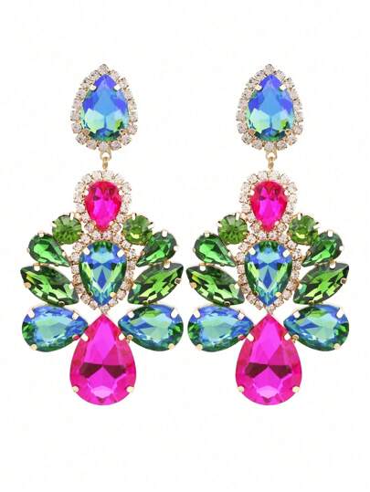 ACEHLN 新款長款金屬彩色水晶吊墜耳環,高品質時尚鑽石配飾女士批發 - Style 1 - 查看 12