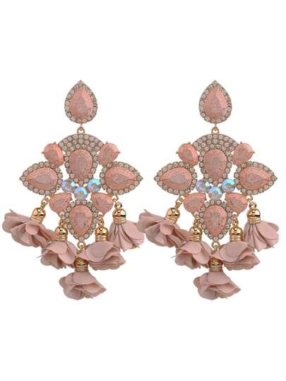 ACEHLN 超大号锌合金水钻花朵流苏耳环 - 玫瑰金 - 查看 10