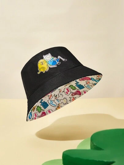 ADVENTURE TIME X SHEIN 双面防晒日常款渔夫帽、礼品 - 黑色 - 查看 1