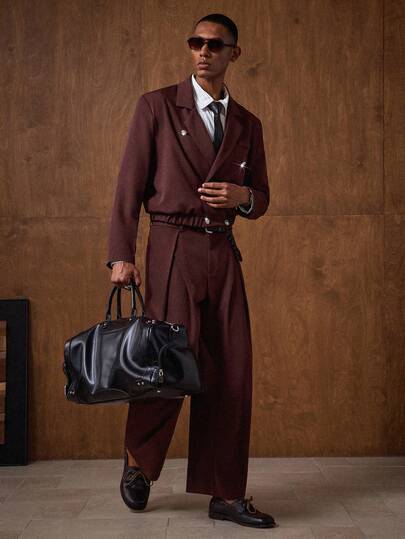 AKNOTIC 男士西装套装,舒适百搭,适合日常穿着、聚会、派对、约会等场合。 - 玫瑰紅 - 查看 6