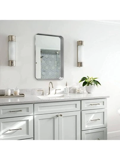 ANDY STAR Bathroom Mirror for Wall, Metal Rounded Corner Rectangle Mirror, Wall Mirror in Stainless Steel Metal Frame, 2" Deep Set Design Hangs Horizontal Or Vertical - 拉絲鎳 - 查看 1