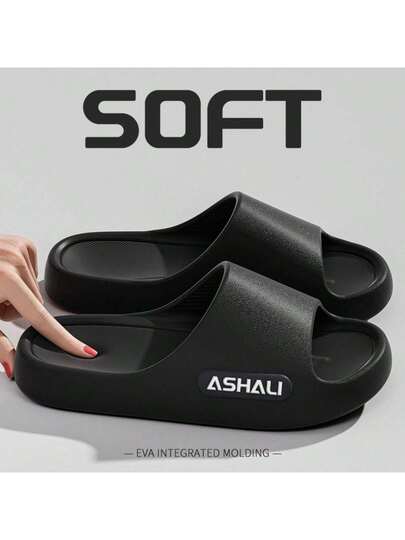ASHALI 黑色侧字母光滑室内拖鞋,EVA 柔软材质人字拖 - 黑色 - 查看 1