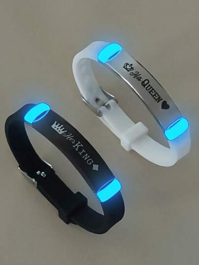 ATLVXJL 2 件/套夜光情侣/友谊皇冠不锈钢和硅胶手链套装,她的国王和他的王后,休闲情侣首饰适合日常佩戴和情人节礼物 - 彩色 - 查看 2