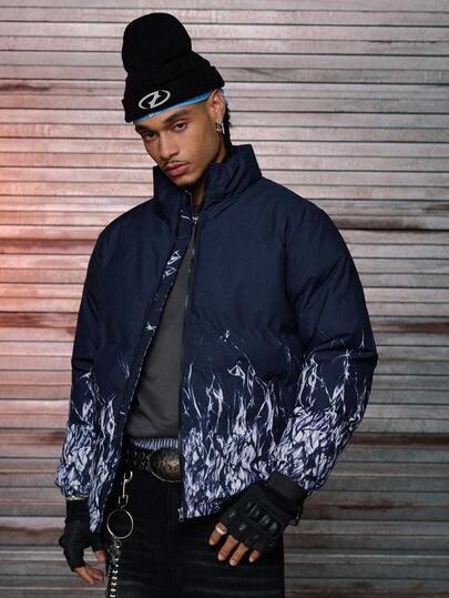 AXEPEAK 男士墨纹拉链休闲短款冬季夹克 - 藍白色 - 查看 1