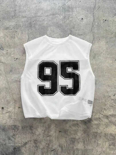 AXEPEAK 男士网眼面料数码印花无袖背心 - 白色 - 查看 1