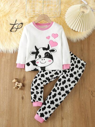 女小童奶牛圖案貼布細節睡衣套裝 - 彩色 - 查看 1