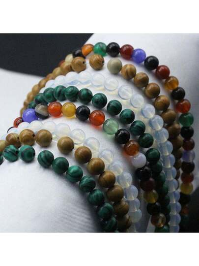 約60顆/袋 6mm天然多色瑪瑙&合成綠松石&白玉石散珠,適用於自製手鍊項鍊珠寶
