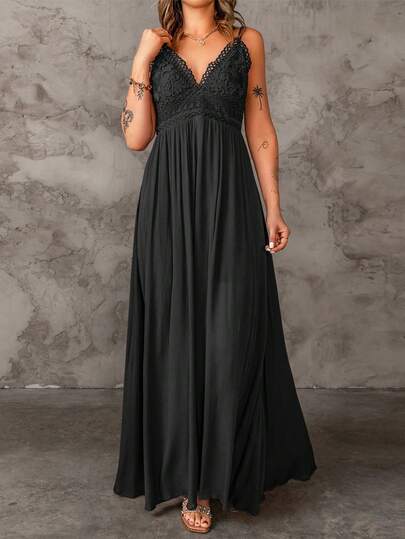 6. 素色水溶蕾絲拼接吊帶連衣裙