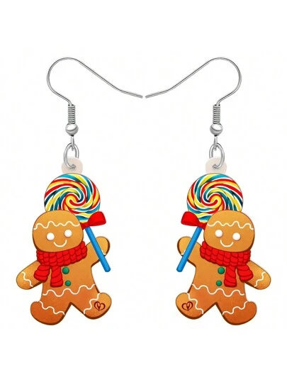 壓克力垂墜糖果聖誕薑餅人耳環飾品首飾裝飾禮物,適用於女士女孩兒童派對裝飾