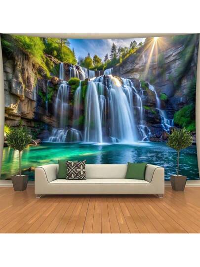 超大尺寸瀑布和山峰阳光挂毯,描绘了充满活力的自然风光,适合客厅、卧室、办公室和家居装饰 - 彩色 - 查看 1