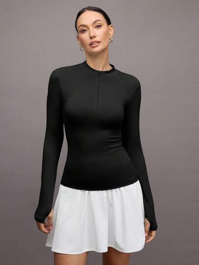 Activina 半拉链拇指孔运动套头衫 黑色拉链运动衫 - 黑色 - 查看 1