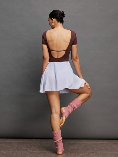 Activina 女士纯色圆领连体裤,时尚夏季运动服 - 棕色 - 查看 6