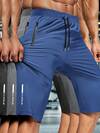 男士短裤,夏季透气运动抽绳健身跑步短裤,带口袋和反光印花,适合日常运动和户外活动,黑色