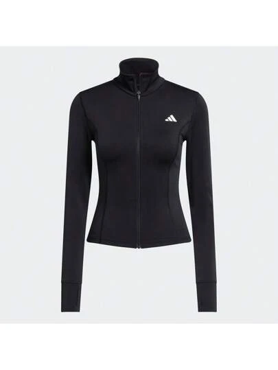 Adidas OPTIME ESSENTIALS 女士吸湿排汗半拉链修身运动夹克 JM9185 - 黑色 - 查看 1