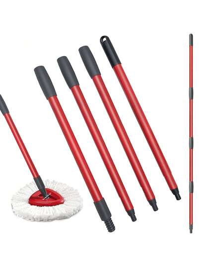 Adjustable 30"-58" Stainless Steel Mop Handle - 4-Section Telescoping Pole For Spin Mops (Universal Fit, Space-Saving Design)