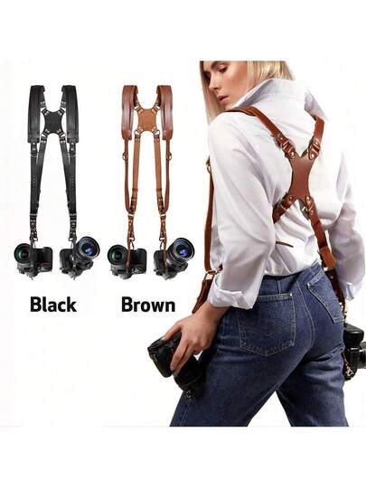 可调节真皮相机肩带,快速释放,适用于户外摄影设备 - 彩色 - 查看 1