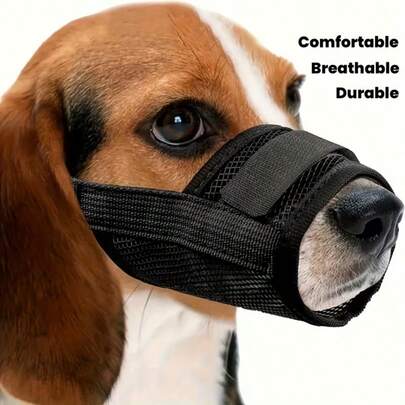 Review: I'm very satisfied with this adjustable pet dog soft muzzle! It's super comfortable for my furry friend and the mesh training design is fantastic. It fits perfectly and seems really durable. Definitely a must-have for dog owners. 🐾🐶