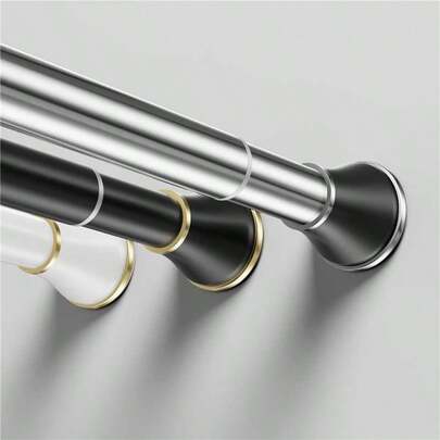 可调节伸缩窗帘杆,金色饰边 - 无需钻孔,不锈钢材质,塑料底座,适用于浴帘、窗帘、衣柜收纳和阳台晾晒 - 银黑色、黑金色、白金色浴室装饰