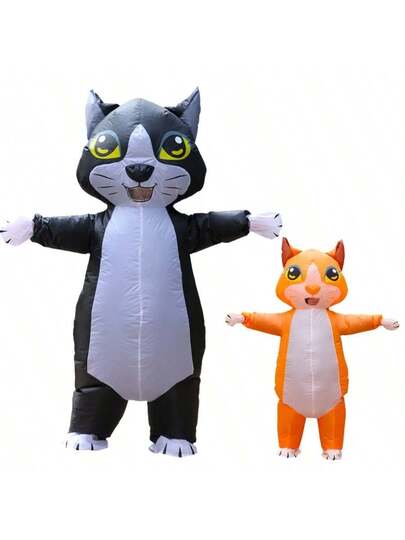 成人黑色和橙色充气猫咪服装,适合万圣节、圣诞节、狂欢节和化装舞会 - 彩色 - 查看 1