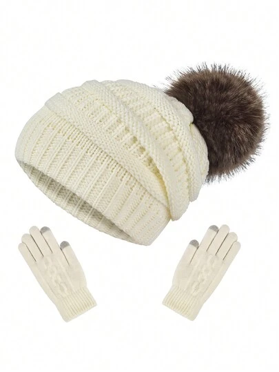成人羊絨暖單球仿貂皮帽,時尚觸控秋冬服飾配件1套