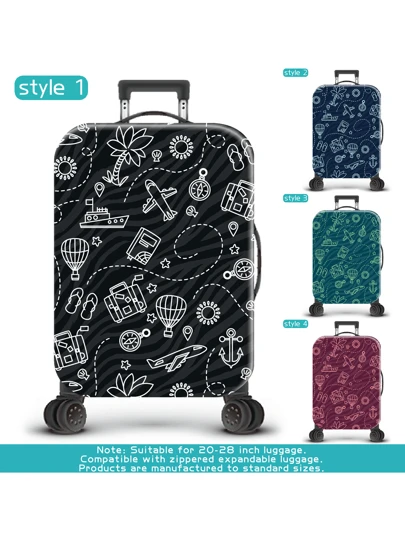 飞机旅行印花系列行李箱保护套旅行配件适用于商务旅行度假旅行行李托运返校为您的行李箱增添色彩。适用于20-28英寸的箱子。学校用品包学校用品 - 彩色 - 查看 24