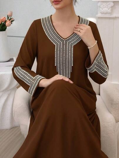 Al Najma 女士宽松刺绣串珠长袍,适合开斋节穿着