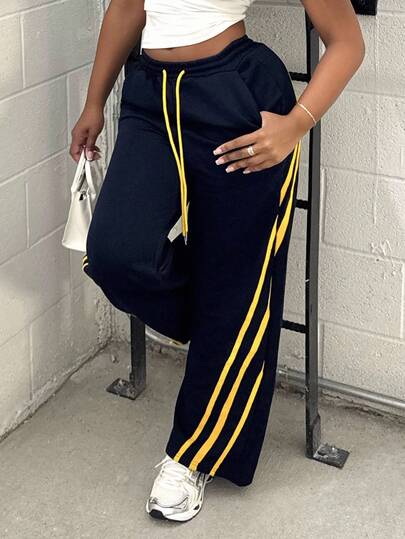 Alexandranx 女士春夏情侣装比赛日外出学院风黄色撞色织带运动裤、狂欢节服装、狂欢节