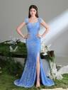 少女閃片點綴紗裙開叉魚尾禮服