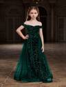 少女露肩 A 字形礼服,后系带设计 - 优雅飘逸的廓形,适合毕业晚会、红毯晚会、婚礼宾客服装、生日派对、选美活动