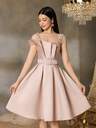 少女心形领口礼服,复古灯笼袖,贴花细节和迷人的 A 字裙 - 非常适合舞会、婚礼宾客
