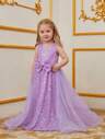 女童夸张 V 领亮片连体裤,搭配及地薄纱袖,是选美比赛、学校舞会、婚礼招待会、节日庆典和教堂仪式的优雅正式服装