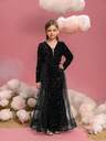 少女优雅亮片礼服,飘逸长袖,A字形下摆,薄纱飘逸,毕业舞会的完美之选