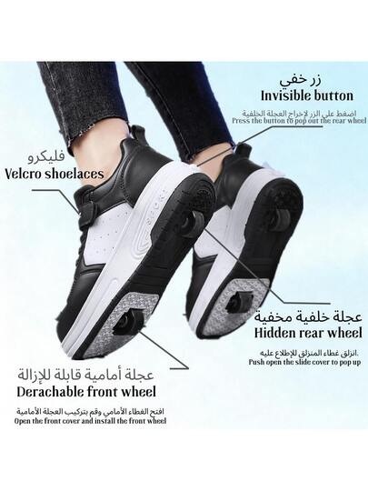 四季时尚透气低帮运动鞋,双轮,适合青少年、学生、成人、情侣、户外运动男女轮滑鞋 - 黑 - 查看 5