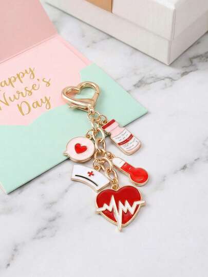 合金护士医生主题吊坠,粉色钥匙扣,女士装饰吊坠带扣,钥匙扣,是国际护士节的完美礼物,经典款,情侣吊坠,适用于包包、钥匙、耳机、手机壳等,护士主题,感谢护士。简约百搭。旅行配件,多功能配件