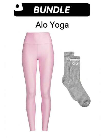 Alo 紧身裤和半筒复古袜套装 透气速干吸汗弹性好 易洗保暖 多功能运动日常男女通用 粉色和灰色 W5766r-粉色+A0480U-灰色