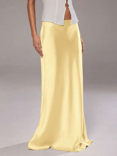 Aloruh 女士纯色优雅超低腰缎面半身裙