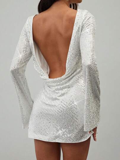 Aloruh 女士夏季性感舞会晚宴闪光截角华丽亮片夜总会派对闪亮水钻首饰女士紧身裹身迷你连衣裙 - 白色 - 查看 1