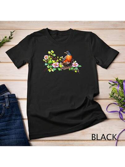 American Robin Backyard Birds Dogwood Flowers For Birders T-Shirt - 黑色 - 查看 1