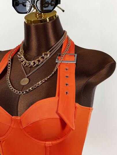 Amplova 女式无袖短款上衣,胸部带金属扣,露背设计 - 亮橙色 - 查看 1