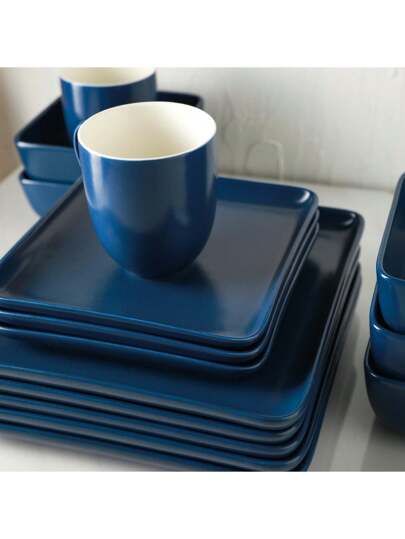 Amy Porcelain Dinnerware Set - Navy Blue - 彩色 - 查看 1